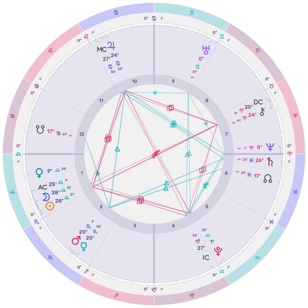 While the opposition between Jupiter and Pluto is wide (about 7 degrees,) I’m including it because both planets are slow-moving, social and generational influences, and their tense energy is indicative of what is happening now throughout the world. In LUNA Astrology Software, this aspect appears as a solid line, indicating significant influence. The same is true on Astro.com, while Astro-Seek renders it as a dotted line, suggesting a secondary influence that still reflects the energy at play. Granted, I know that there are astrologers who may use a tighter orb of influence, but I don’t think we can negate Pluto’s power and grand scheme in regards to current events.